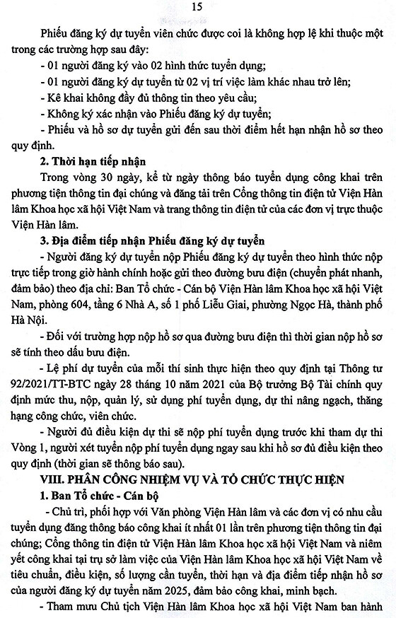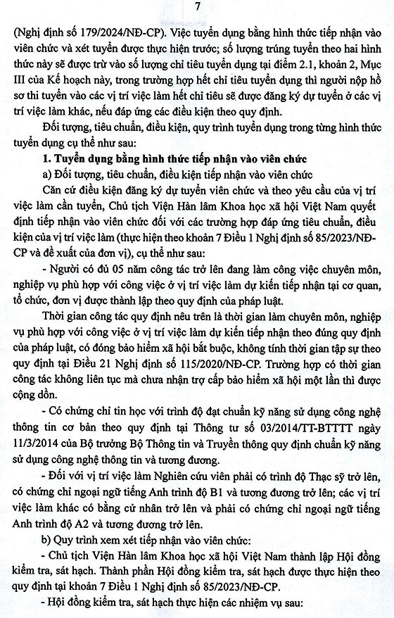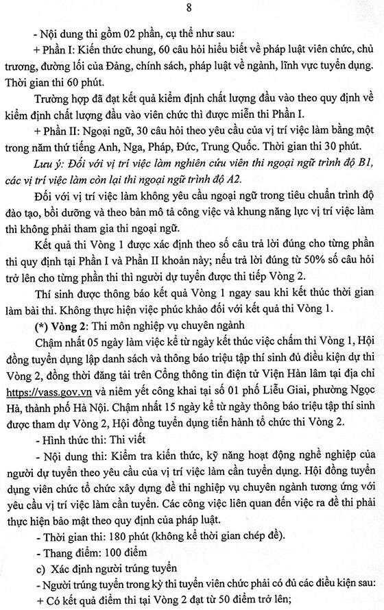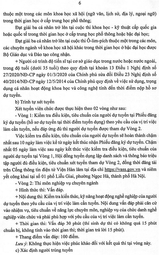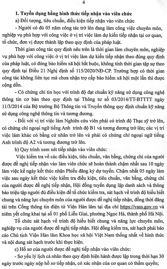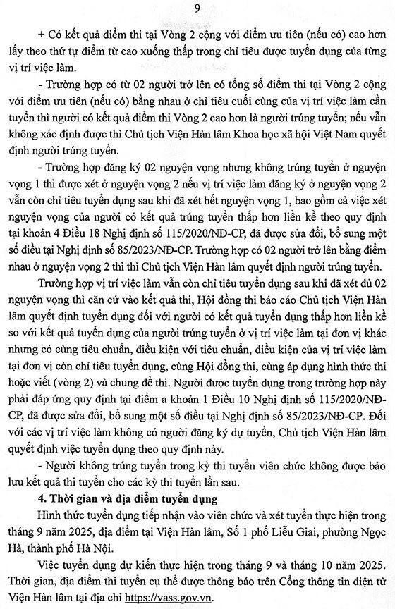 – Hình thức tuyển dụng tiếp nhận và viên chức và xét tuyển thực hiện trong tháng 9 năm 2025, địa điểm tại Viện Hàn lâm, Số 1 phố Liễu Giai, phường Ngọc Hà, thành phố Hà Nội.