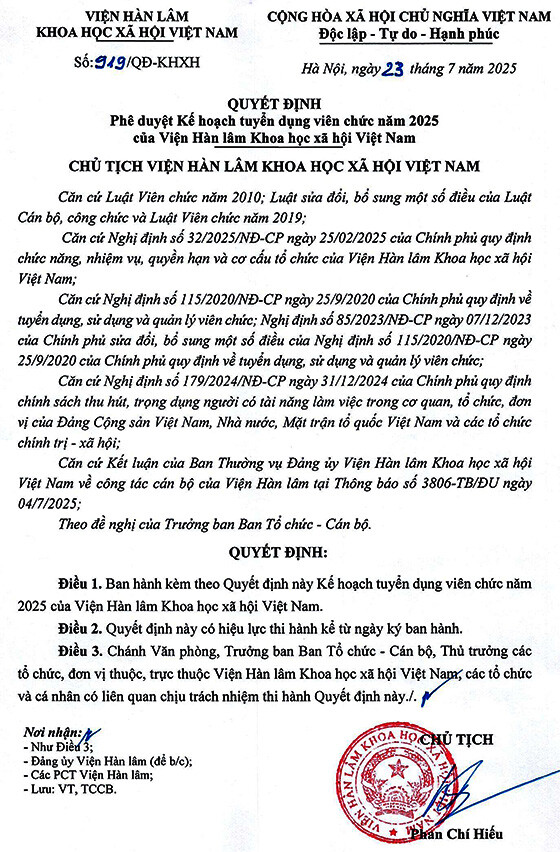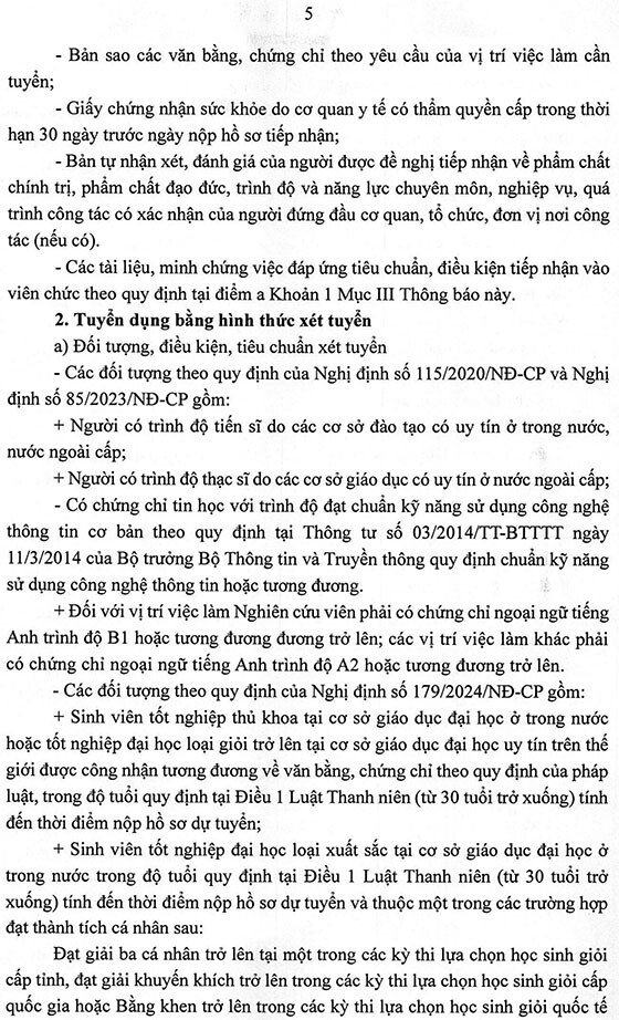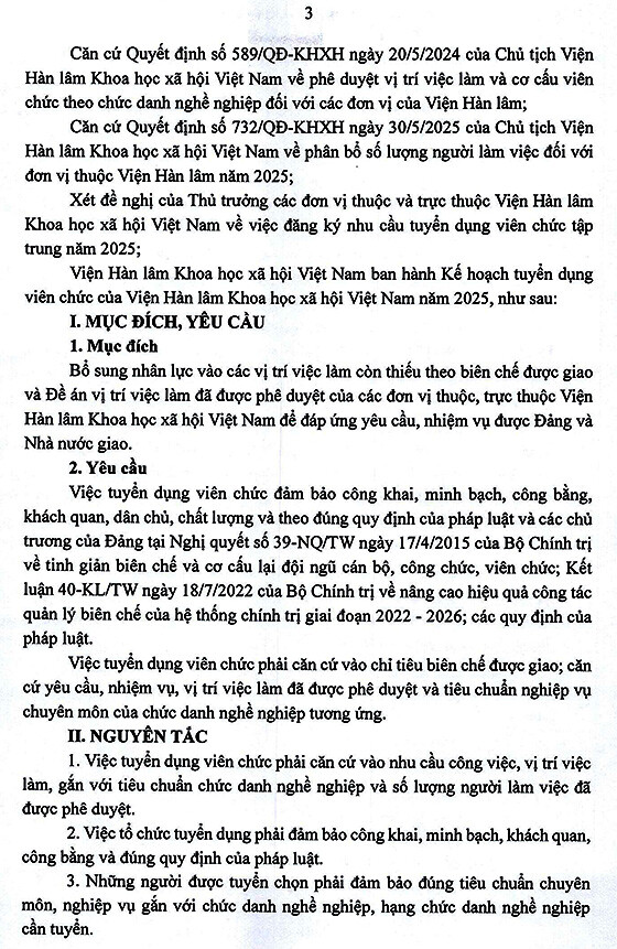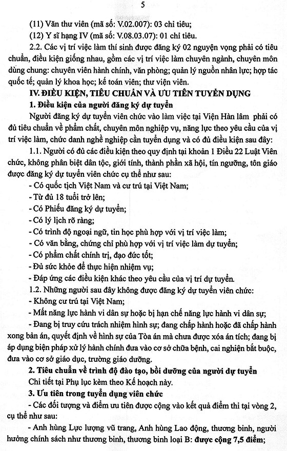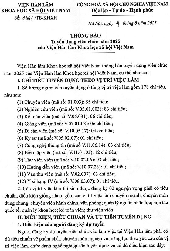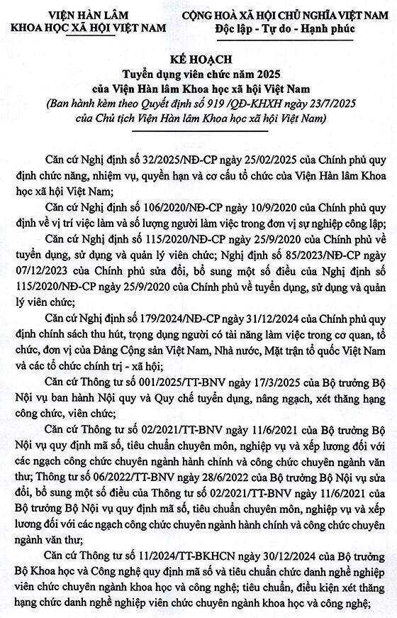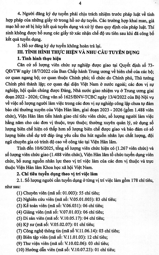 – Hình thức tuyển dụng tiếp nhận và viên chức và xét tuyển thực hiện trong tháng 9 năm 2025, địa điểm tại Viện Hàn lâm, Số 1 phố Liễu Giai, phường Ngọc Hà, thành phố Hà Nội.