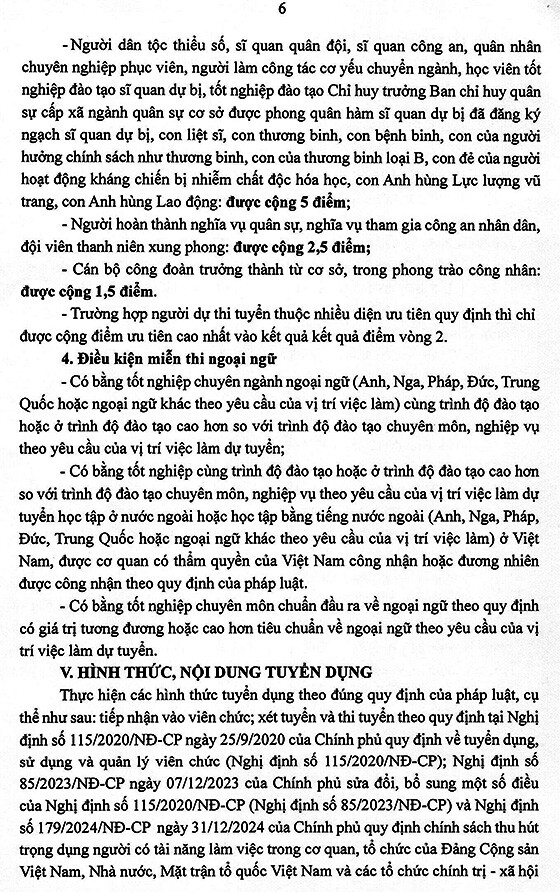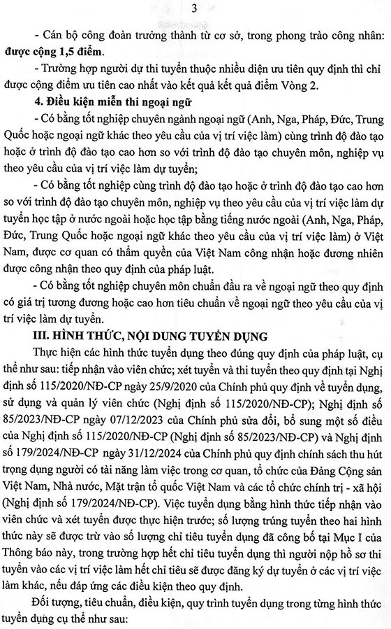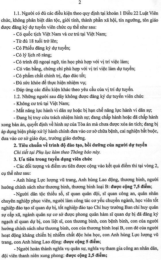 I. Điều kiện, tiêu chuẩn và ưu tiên tuyển dụng