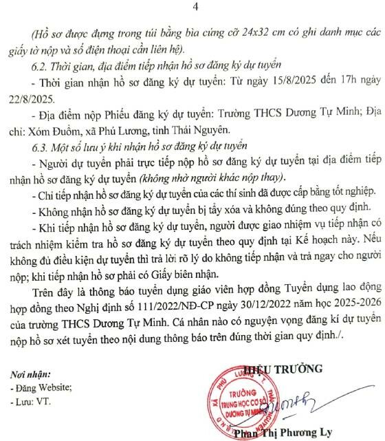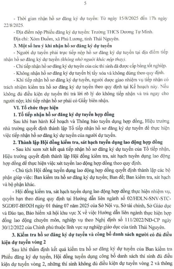 + Thời gian tiếp nhận hồ sơ đăng ký dự tuyển: Từ 8h00 ngày 20 tháng 8 năm 2025 đến 17h ngày 27 tháng 8 năm 2025, nhận Hồ sơ trong giờ hành chính ngày làm việc.