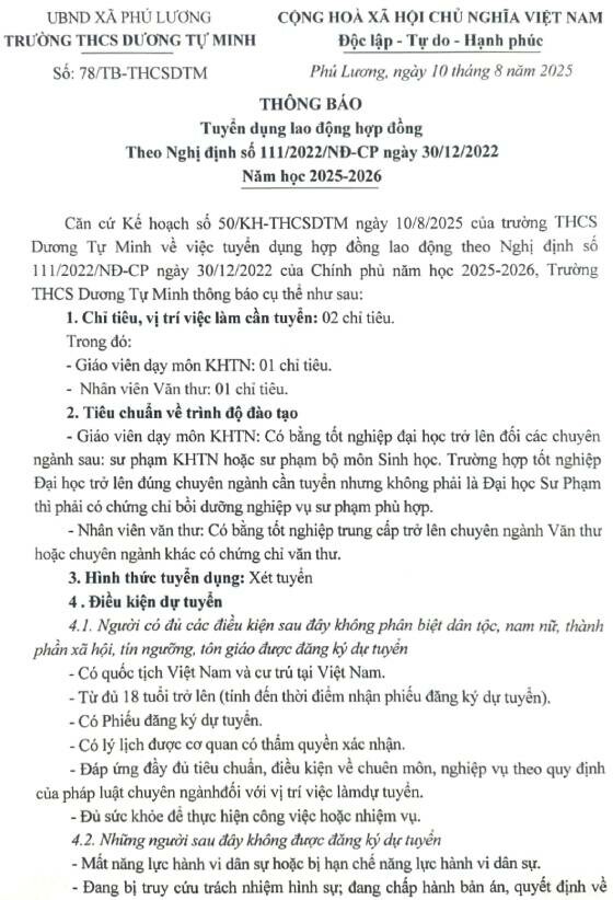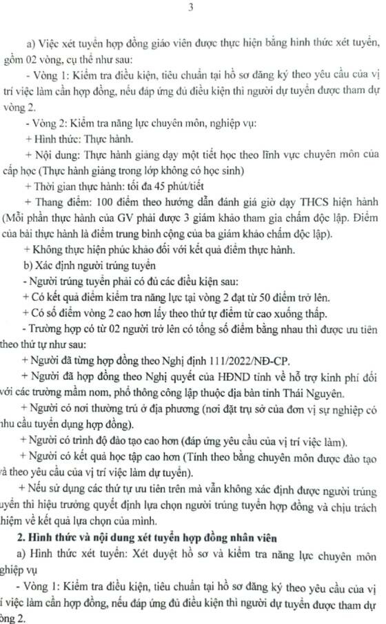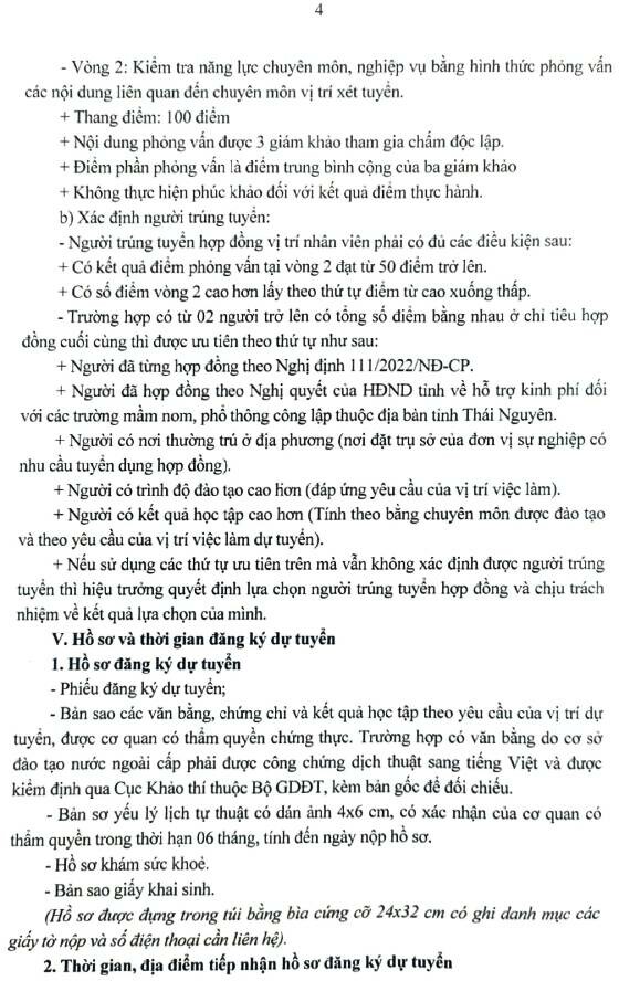 – Thời gian kiểm tra năng lực chuyên môn nghiệp vụ (vòng 2): Sáng ngày 29/8/2025 Trên đây là thông báo tuyển hợp đồng lao động theo Nghị định số 111/2022/NĐ-CP ngày 30/12/2022 của Chính phủ tại trường Mầm non Nhã Lộng xã Phú Bình tỉnh Thái Nguyên./.