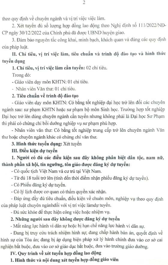 Trường Mầm non Nhã Lộng thông báo tuyển dụng hợp đồng theo Nghị định số 111/2022/NĐ-CP ngày 30/12/2022 của Chính phủ năm học 2025 -2026 cụ thể như sau: