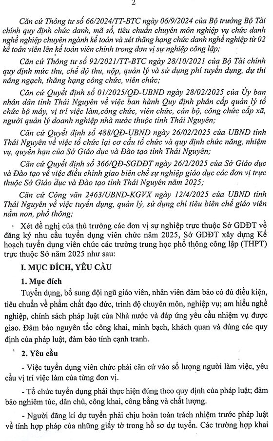 Sở Giáo dục và Đào tạo tỉnh Thái Nguyên thông báo tuyển dụng viên chức các đơn vị sự nghiệp công lập trực thuộc Sở Giáo dục và Đào tạo tỉnh Thái Nguyên năm 2025 như sau: