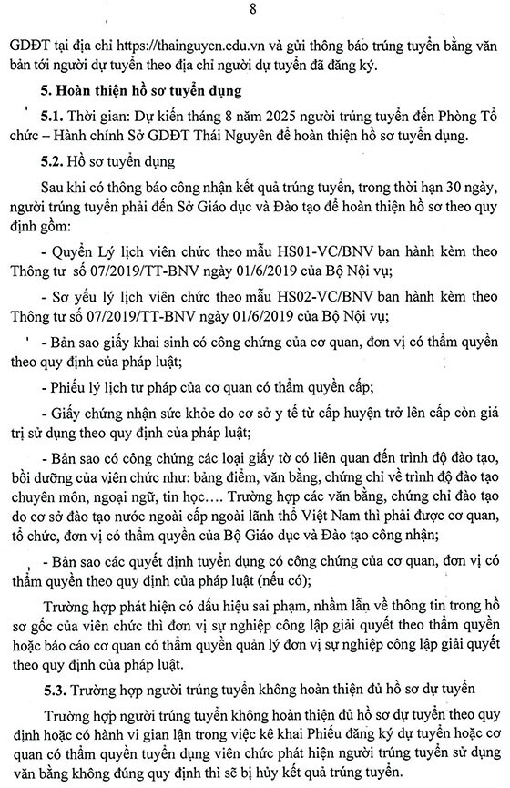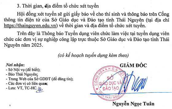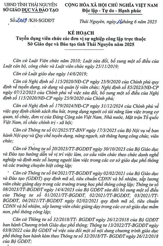 Sở GD&ĐT tỉnh Thái Nguyên tuyển dụng viên chức năm 2025